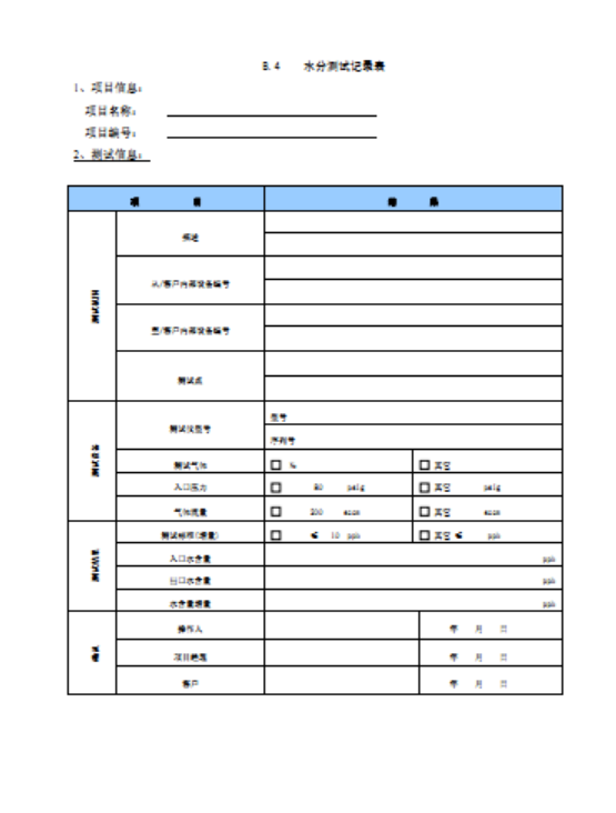水分測試,氣體速度應低于設計流速的10%,且小于3m/s,測試氣源的水分應小于1ppbv,水分增量應小于20ppbv,測試結束后,應至少保持20min穩(wěn)定在規(guī)定值以下為合格。